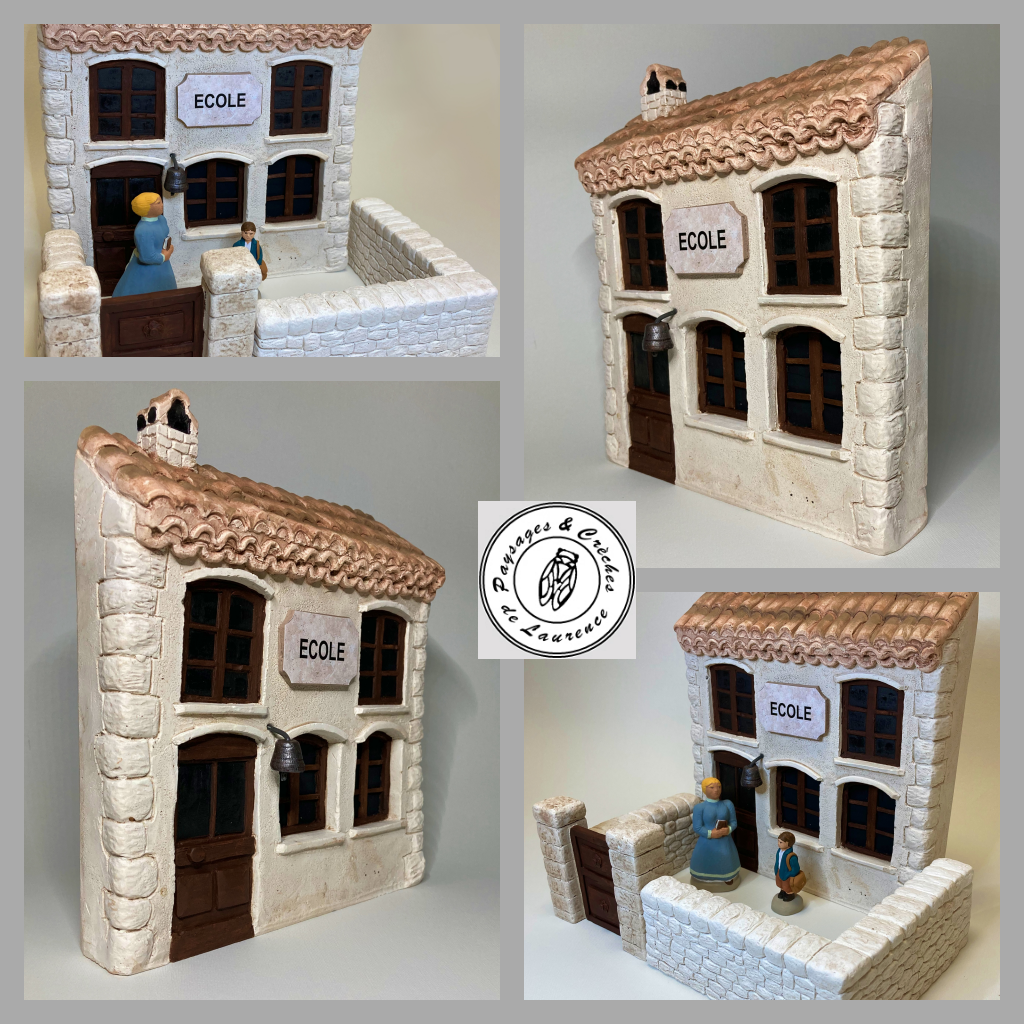 Murets, piliers, portillon et santons vendus séparément. Possibilité d’ajouter également le préau comme pour l’ensemble école…